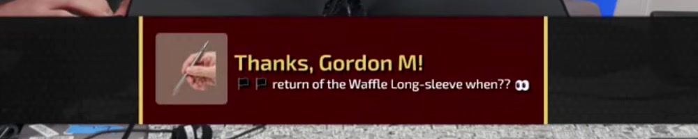 Aaron G | message | Thanks, Aaron G! Any chance we can get a LTT controller or Keyboard and mouse? | Timestamp |