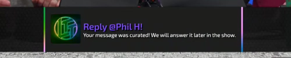 Phil H | reply | Reply @Phil H! Your message was curated! We will answer it later in the show. | Timestamp | ![]() |