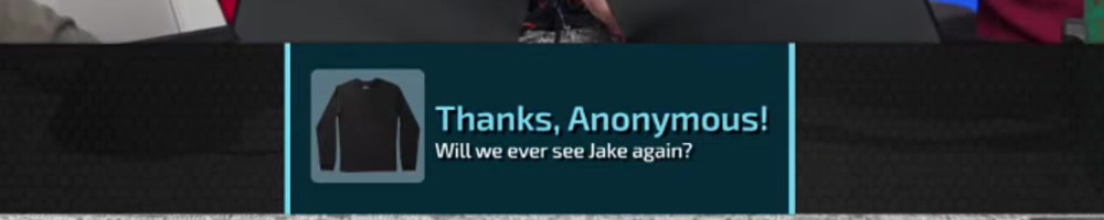 Anonymous | message | Thanks, Anonymous! Will we ever see Jake again? | Timestamp | ![]() |