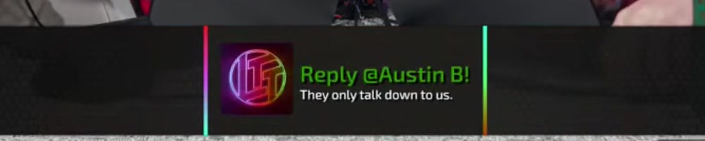 Austin B | reply | Reply @Austin B! They only talk down to us. | Timestamp | ![]() |