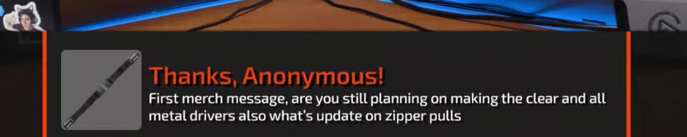 metal drivers also what's update on zipper pulls | Timestamp |  |